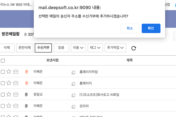 수신된 메일에 대하여 다시 메일을 수신하지 않도록 ‘수신거부’기능을 제공합니다.